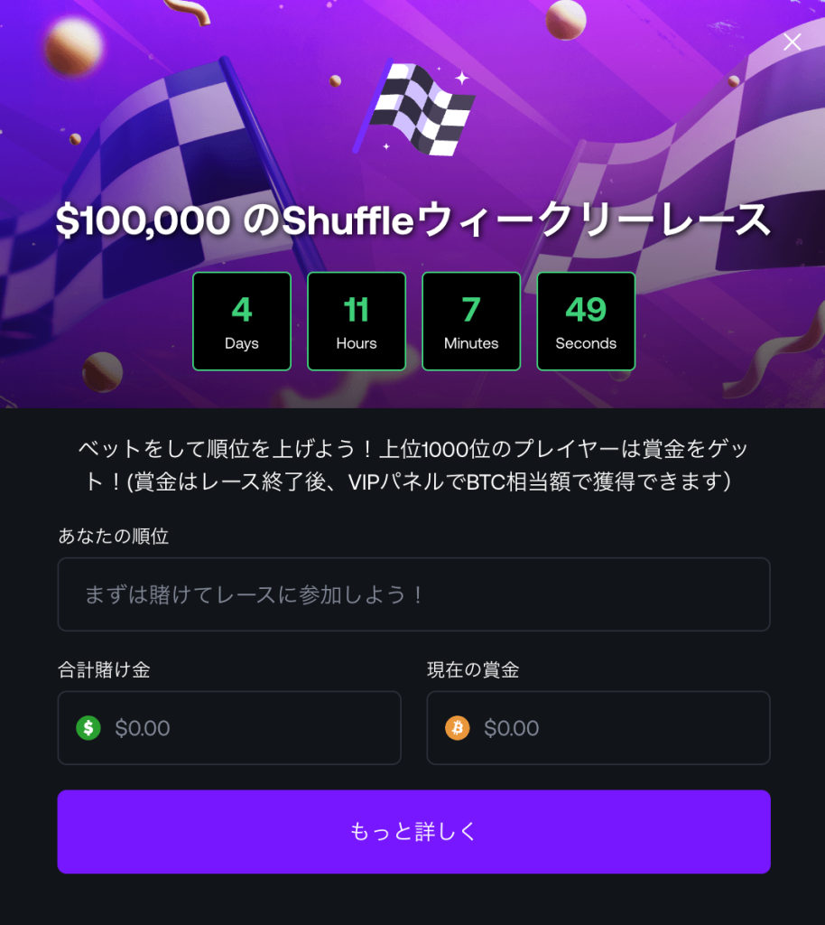 Shuffleカジノでは季節や時期限定の特別オファーもあったりします。例えば夏には$150,000規模のサマーポーカートーナメントが開催され、上位入賞者は豪華賞金をドカンとゲットできます。